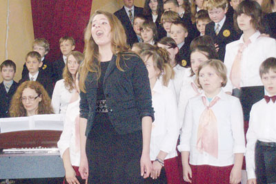 Na zdjęciu: Monika Kuczyńska – ucząca się śpiewu w pogirskiej szkole muzycznej – zachwyciła publiczność swoim pięknym głosem i urokiem.