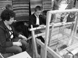 trwa nabywanie umiejętności pracy na warsztacie tkackim