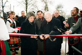 Na zdjęciach: Dom Kultury Polskiej w Wilnie - 6 tys. m2; uroczysty moment przecięcia wstęgi - dokonali tego marszałek Senatu RP Alicja Grześkowiak i prezes Stowarzyszenia „Wspólnota Polska” śp. Andrzej Stelmachwoski 18 lutego 2001 r.; cotygodniowe zebrania u dyrektora służą omówieniu planów i przedsięwzięć.