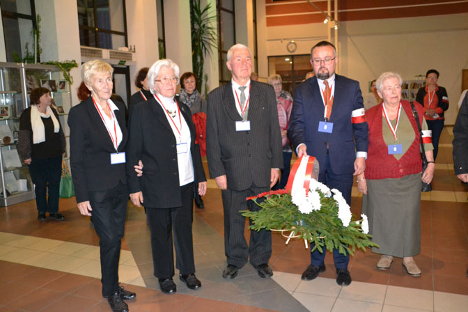 Uwieńczeniem konferencji było złożenie kosza kwiatów przez członków Stowarzyszenia „Rodzina Ponarska” na czele z Marią Wieloch przed umieszczoną w holu DKP Tablicą Ponarską w hołdzie pomordowanym rodakom w dołach ponarskich.